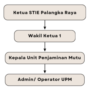 Unit Penjaminan Mutu (UPM) STIE Palangka dibentuk berdasarkan Surat Keputusan Ketua Sekolah Tinggi Ilmu Ekonomi Palangka Raya Nomor: 8/I-1/STIE-PR/I/2011 tanggal 20 Januari 2011 tentang Pembentukan Unit Penjaminan Mutu (UPM)Sekolah Tinggi Ilmu Ekonomi Palangka Raya. Adapun struktur organisasinya sebagai berikut: